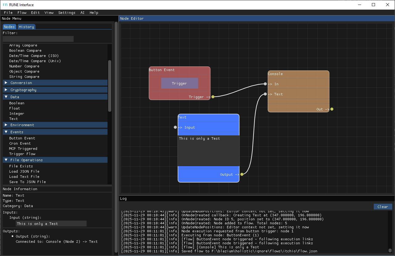 - Custom nodes: create your own nodes with YAML definitions and Luau scripts.